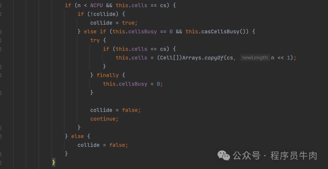 //case1.4: 如果cell数组长度小于Ncup并且当前线程持有的仍然是cs这个引用的话。(其他线程没有对cs进行扩容等操作)