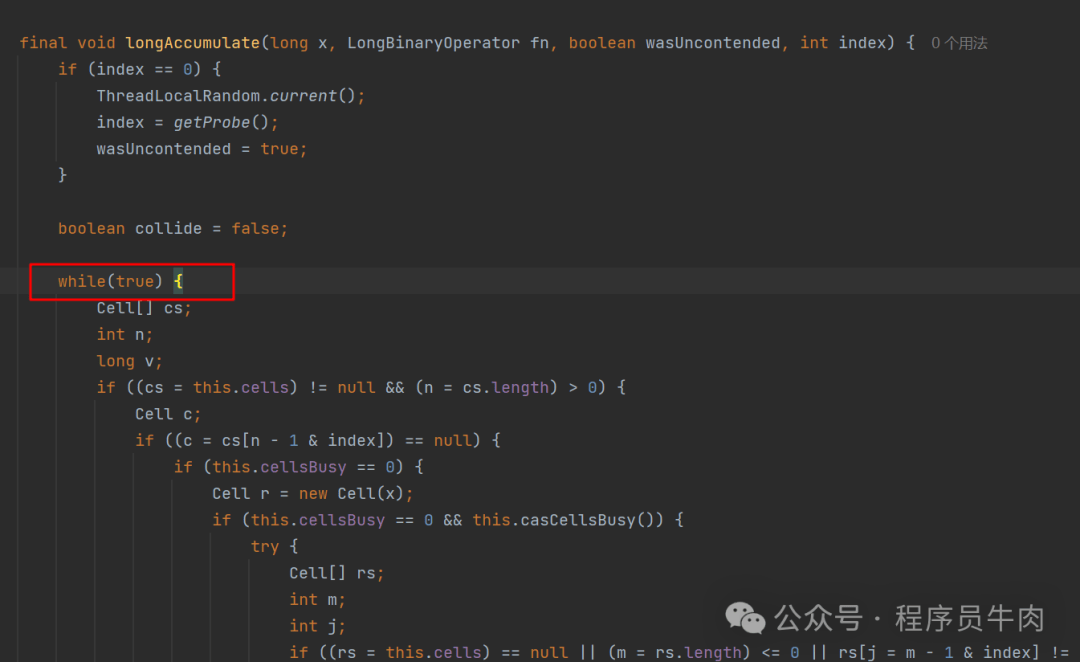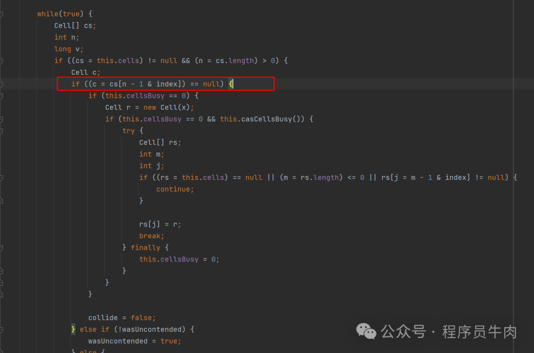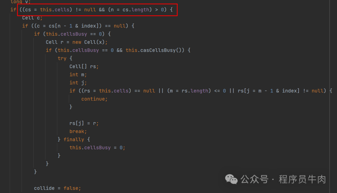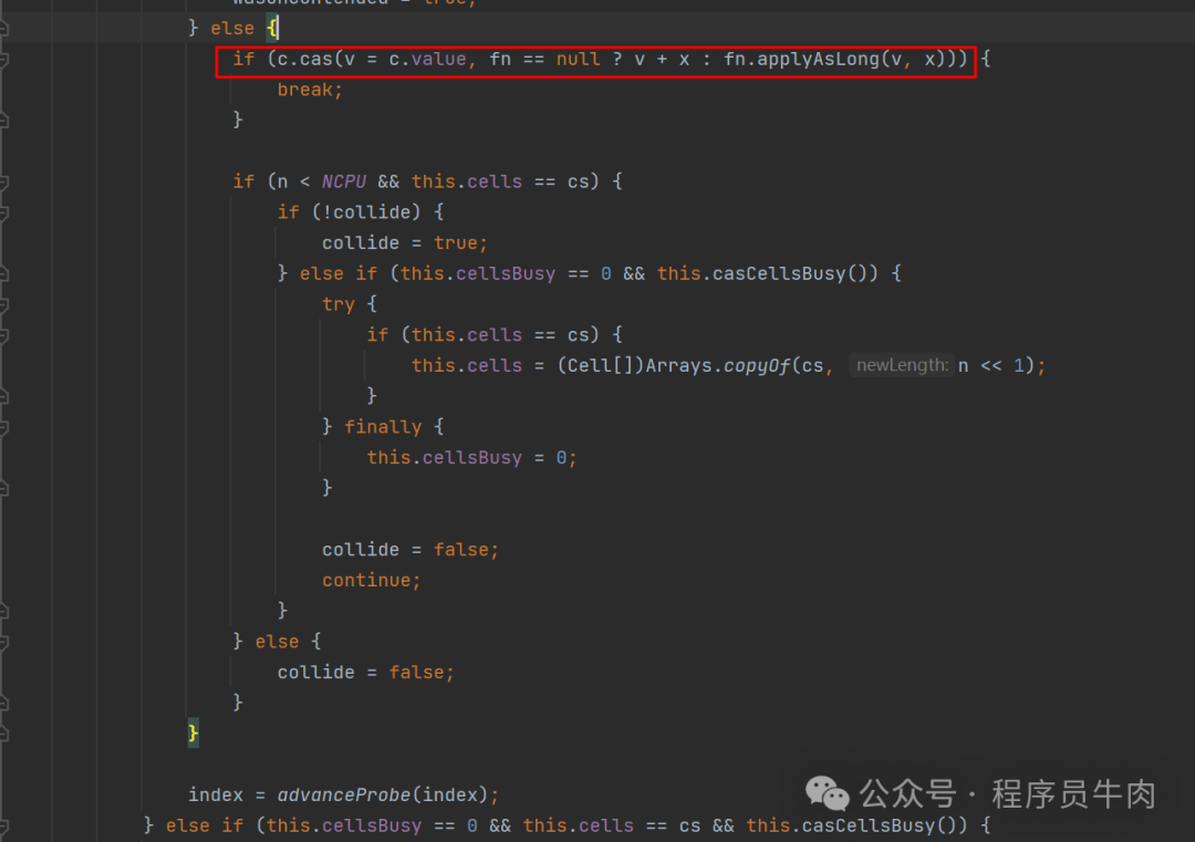 基于这种操作,我们就实现了LongAdder中的“分摊竞争压力”。不得不说,这段代码真的是简洁高效且逻辑复杂。