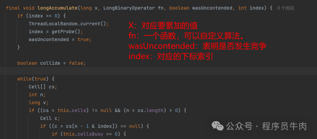 让我们继续来看longAccumulate这个方法,先介绍一下传入的参数: