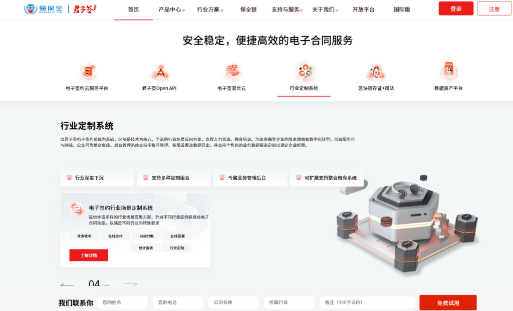 君子签是国内知名的电子保全服务商——易保全旗下的核心产品,主打“区块链+司法存证+电子签约”的全链路模式。它的设计初衷是让“每一份合同都经得起司法的推敲”。君子签通过自有的“保全链”技术,将签署过程中的每一个环节(如登录、核验、点击、提交等)实时推送到公证处、审计局以及司法鉴定中心,确保了证据链的原始性与完整性。
